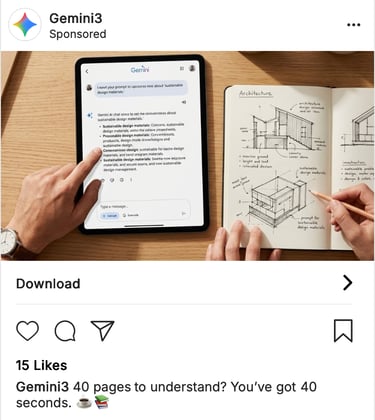 This Instagram post aims to position Gemini Pro as a handy assistant that is there to solve your issues with you.